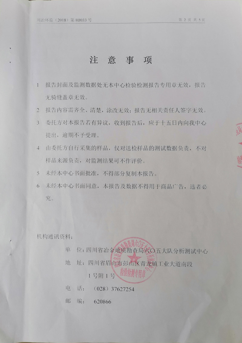 监测机构:四川省冶金地质勘查局六0五大队分析测试中心