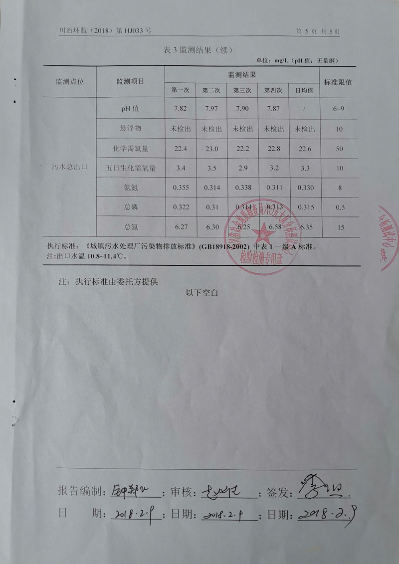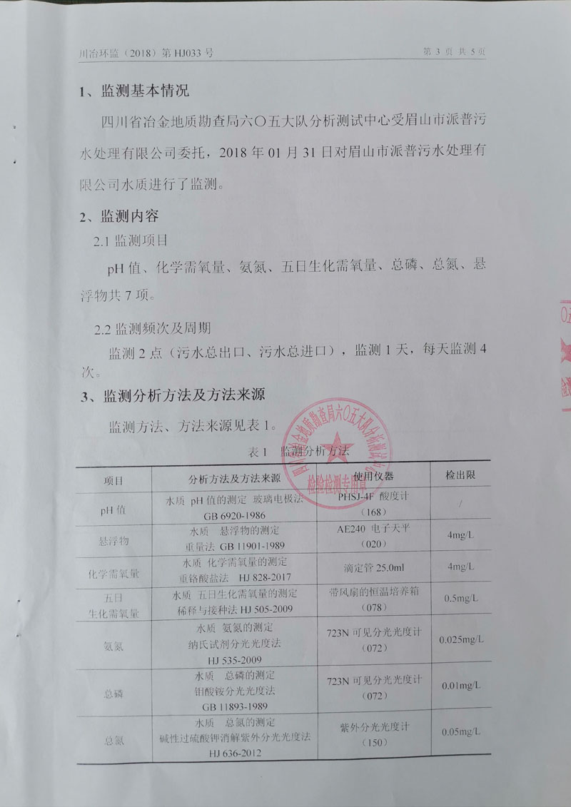 根据环保法律法规要求企业环境信息公开,现将眉山市派普污水处理有限公司污水处理厂2018年1月第三方检测机构检测数据公示如下: